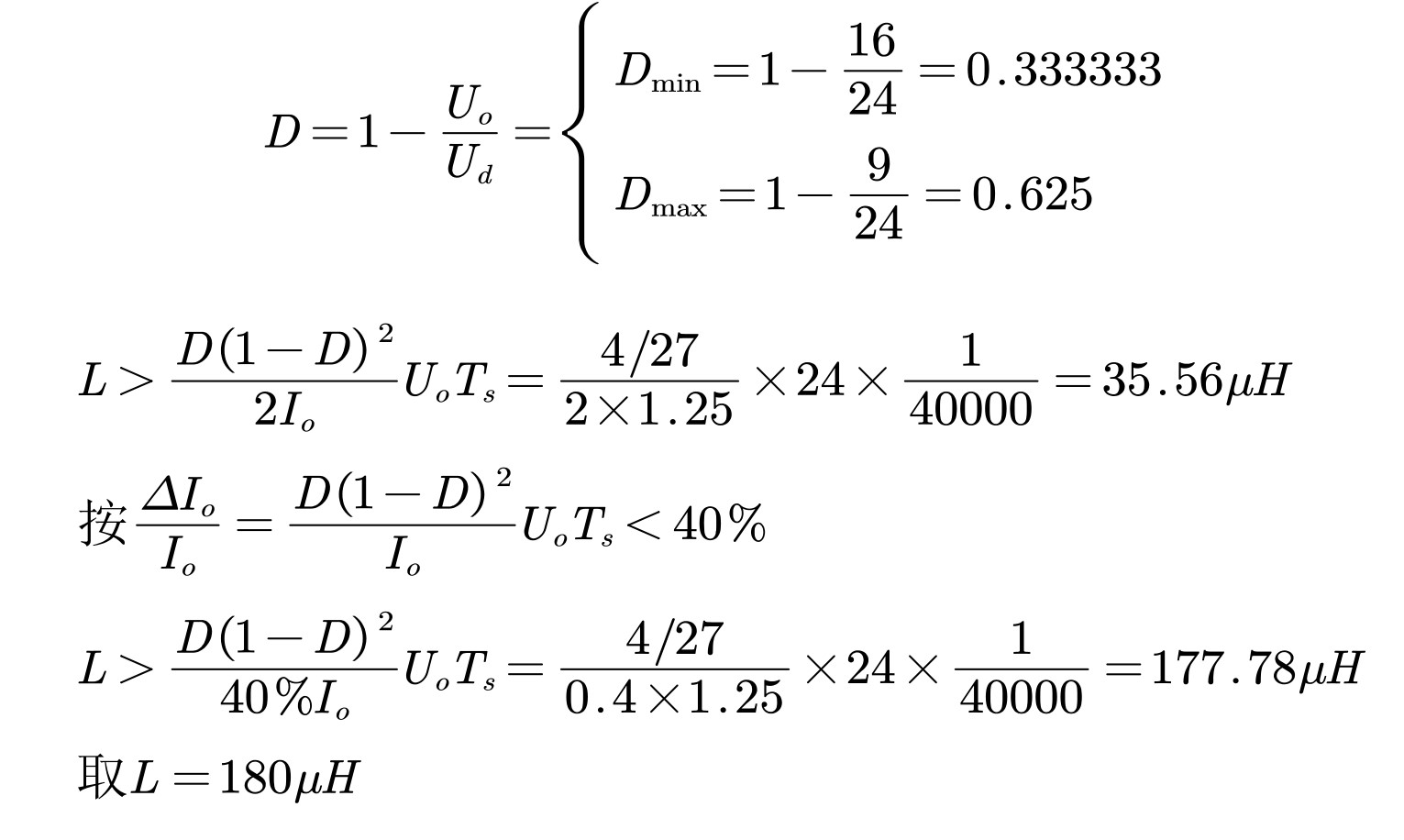 ① 电感计算:忽略电路损耗,工作在CCM 状态,按照电路知识有
