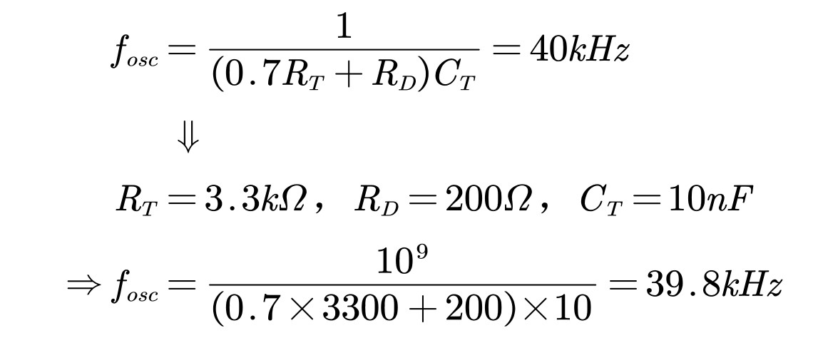 ⑤ 3525开关频率计算:在3525的PIN5、6、7引脚接入CT、RT、RD。