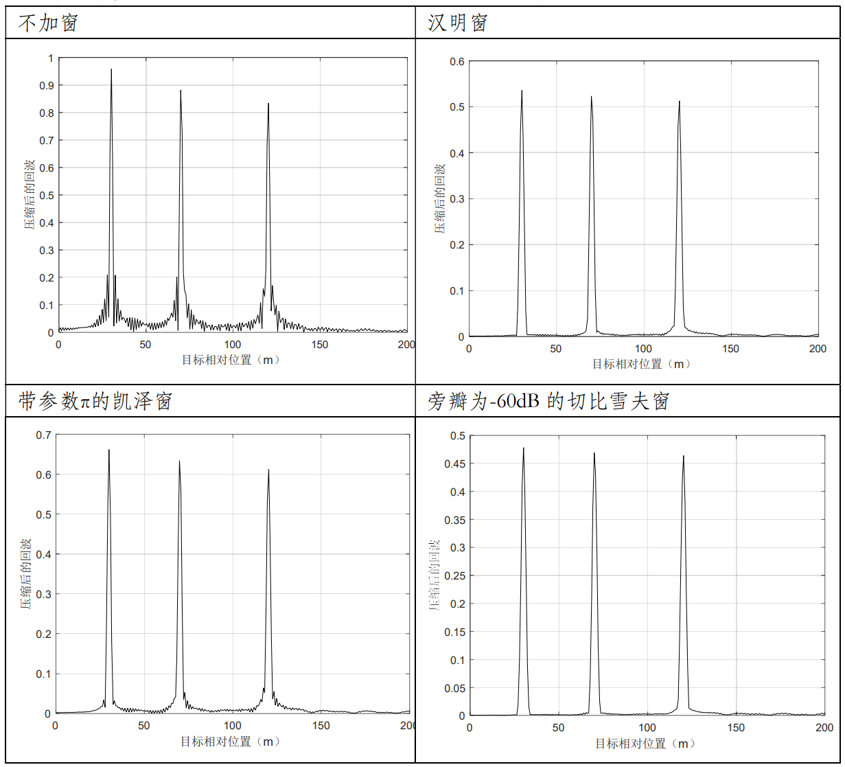 本例中,汉明窗和旁瓣为-60dB的切比雪夫窗效果较好。