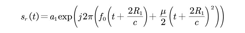 21 x(j,:) = scat_rcs(j) .* exp(i * pi * (2*f0.*(t +(2*range/c))+(b/taup) .* (t +(2*range/c)).^2)) ;