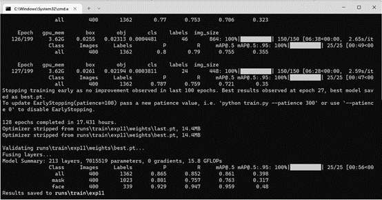 执行 python train.py –data mask_data.yaml –cfg models/mask_yolov5s.yaml