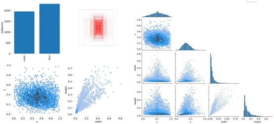 本文数据集来自互联网、COCO 数据集和 WIDER FACE,从中提取有关人脸和口罩的图片。按照 4:1 的比例划分数据集和验证集,经过筛选出 1600 个训练集,400 个验证集。