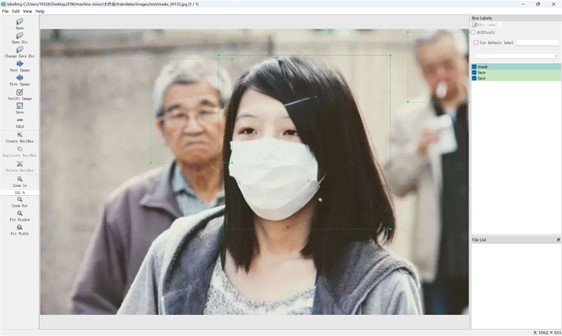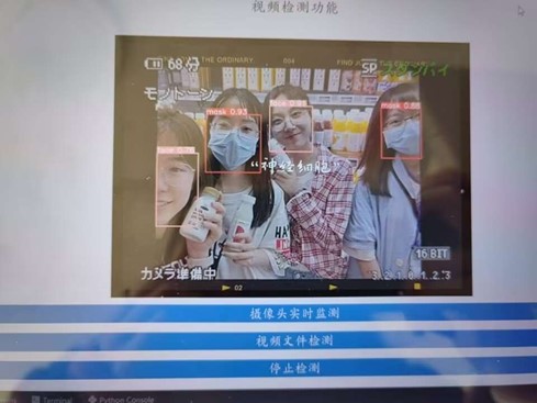 基本功能:用户提交一张照片/一段视频。训练好的模型能够自动框出人脸在画面中的位置,并判断是否佩戴口罩,标注 face/mask。