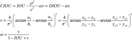 CIOU_Loss:在 DIOU 的基础上,考虑边界框宽高比的尺度信息。定义为: