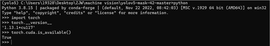 本算法采用的平台为 PyTorch1.13(1.13.1+cu117)深度学习框架,Cuda(及 cudnn) 版本为 cuda11.7,Python 版本为 3.8。使用笔记本电脑操作系统为 Windows11, Intel(R) Core(TM) i9-12900H CPU@ 2.50 GHz,Ge-Force GTX 3060 进行模型训练和验证集的测试。